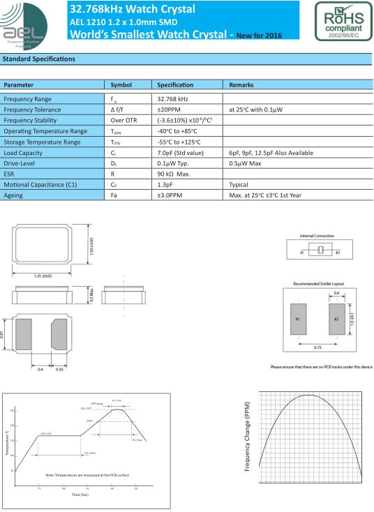 AEL晶振,AEL1210晶振,無源兩腳晶振,32.768K時鐘晶體具有小型,薄型,輕型的貼片晶振表面音叉型晶體振蕩器,產品具有優良的耐熱性,耐環境特性,可發揮晶振優良的電氣特性,符合RoHS規定,滿足無鉛焊接的高溫回流溫度曲線要求,金屬外殼的封裝使得產品在封裝時能發揮比陶瓷振蕩器外殼更好的耐沖擊性.