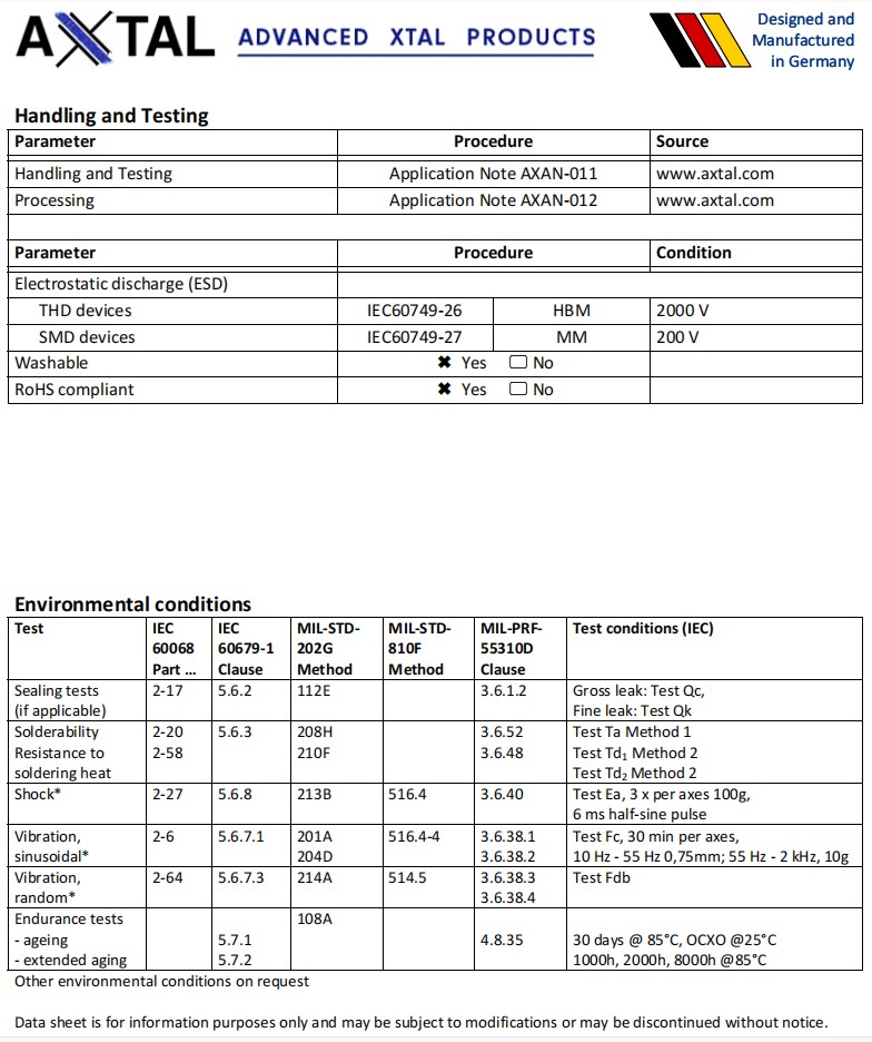 | Overall stability (Note 2) | ±10 to ±100 See table 1 | ppm | Option 2 | ||