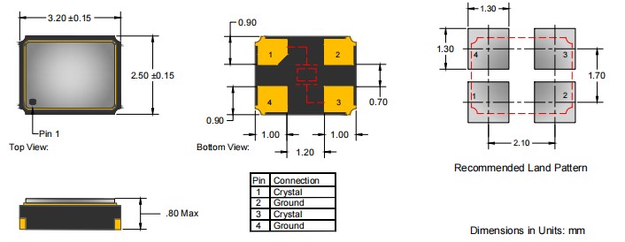 AE-135-A-2-4085-2-30-28M0000,3225mm,Anderson晶振,AE135,藍(lán)牙晶振,尺寸圖