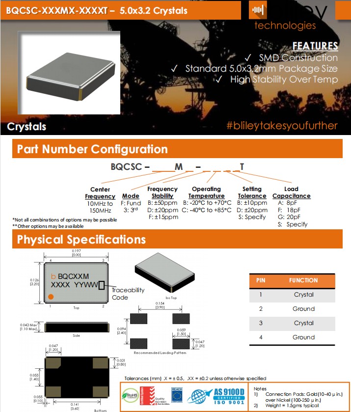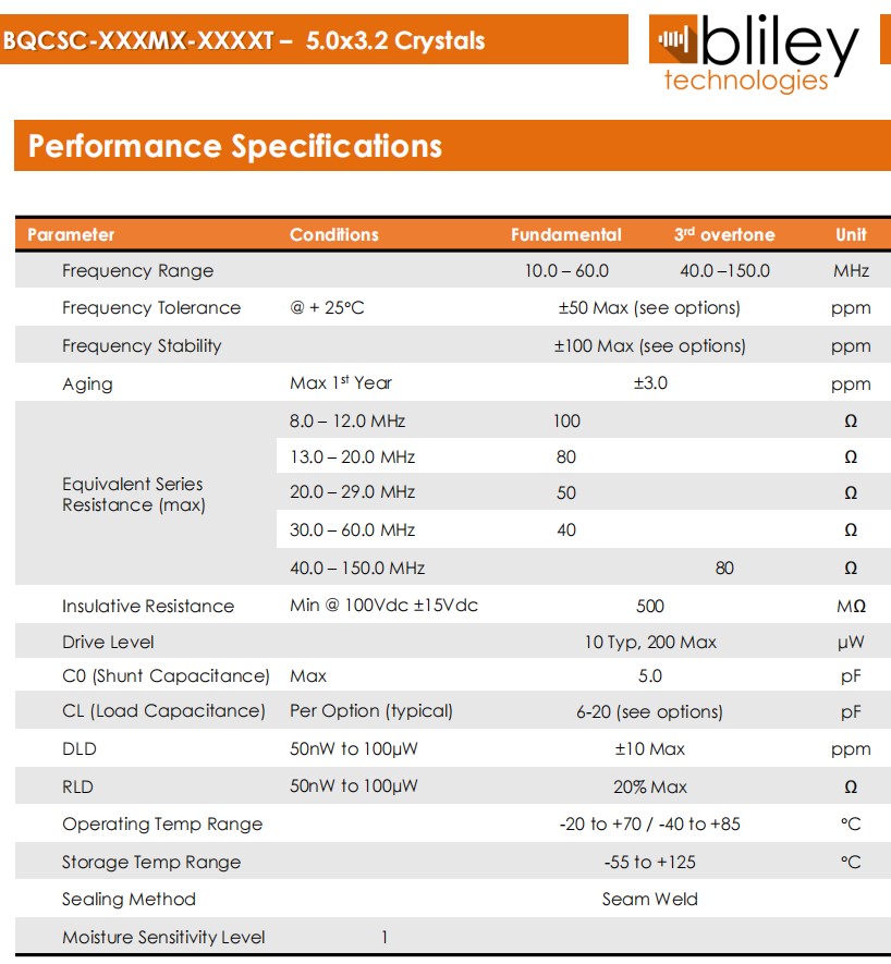 BQCSC-45MF-DBDFT,5032mm,45MHz,Bliley進口晶振,BQCSC,汽車音響晶振,參數表