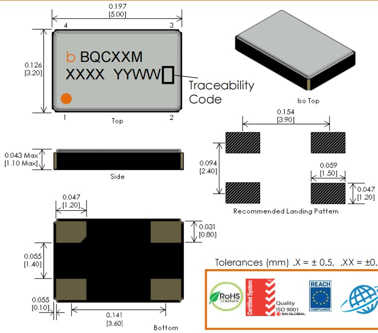 BQCSC-45MF-DBDFT,5032mm,45MHz,Bliley進口晶振,BQCSC,汽車音響晶振,尺寸圖