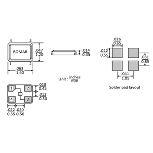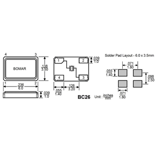 BC26EFI120-40.000000,6035mm,40MHz,Bomar四腳貼片晶振...