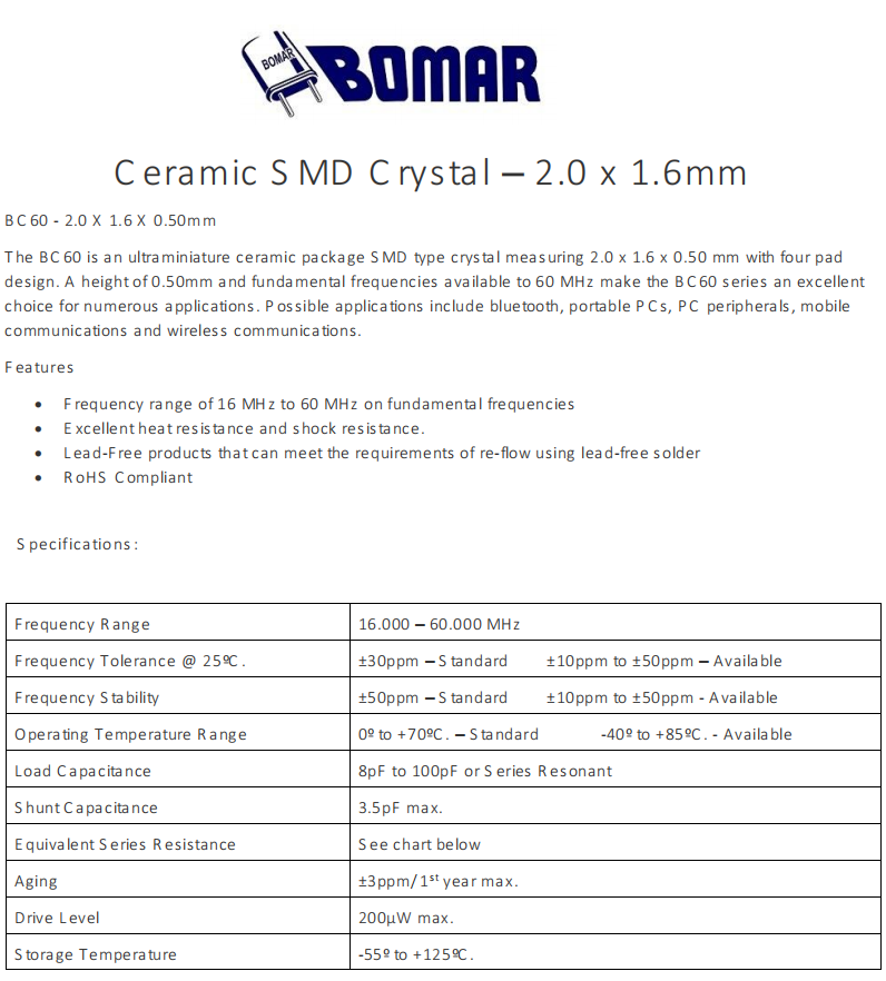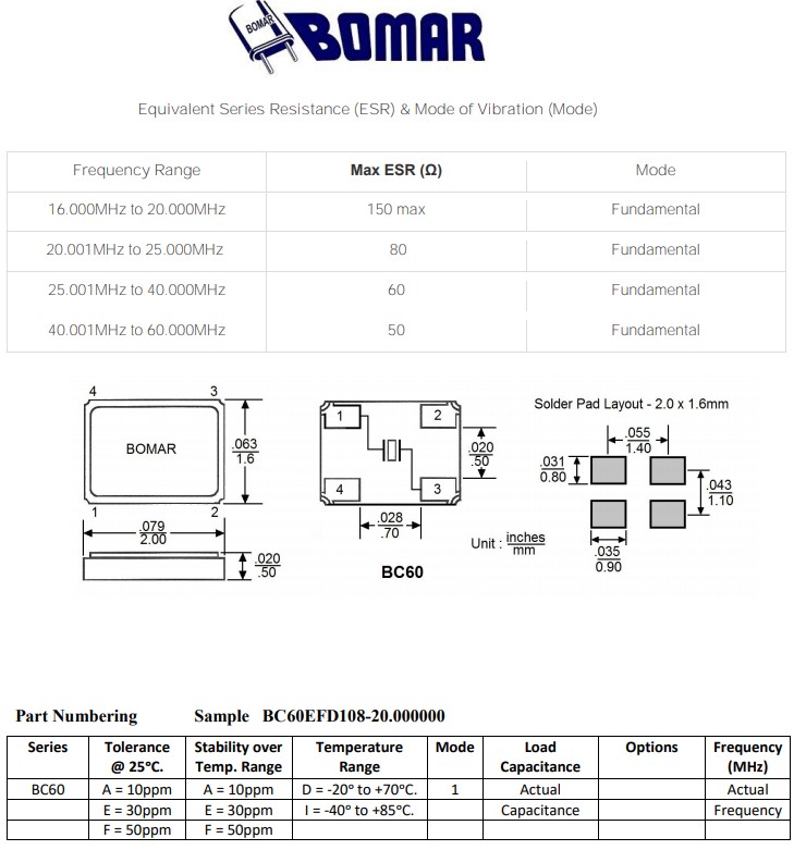 BC60EFD108-48.000000,Bomar無源晶振,平板電腦6G晶振,BC60FEI108-20.000000,SMD石英晶體,參數(shù)表