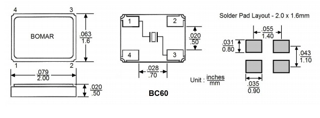 BC60EFD108-48.000000,Bomar無源晶振,平板電腦6G晶振,BC60FEI108-20.000000,SMD石英晶體,尺寸圖