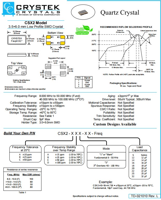Crystek無源晶振,CSX2-CB1-16-22.5792MHz,CSX2-BA3-20-44.736MHz,6G藍(lán)牙晶振,參數(shù)表