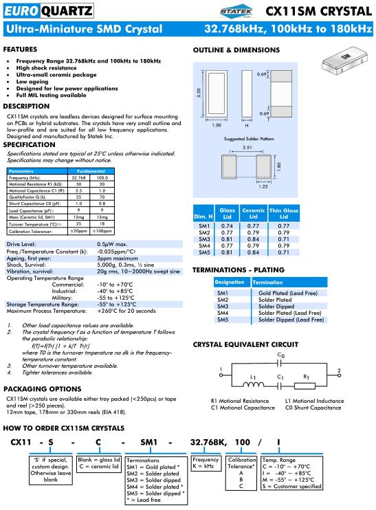 | Drive Level: | 0.5µW max. |