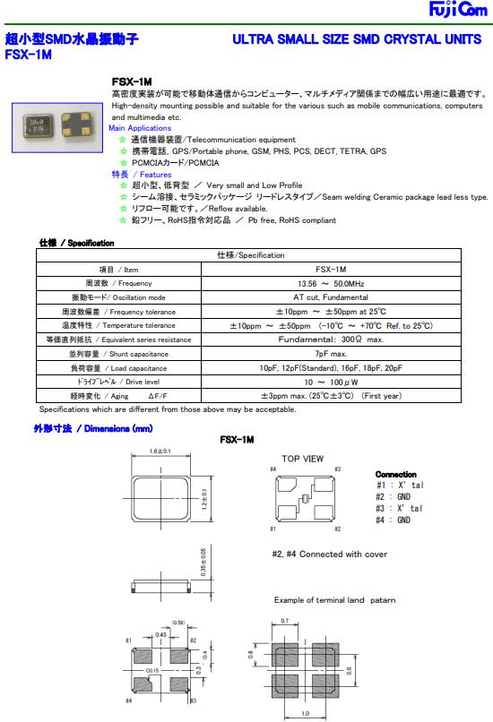 Fujicom晶振,FSX-1M晶振,SMD水晶振動(dòng)子,貼片晶振本身體積小,超薄型石英晶體振蕩器,特別適用于有目前高速發(fā)展的高端電子數(shù)碼產(chǎn)品,因?yàn)榫д癖旧硇⌒突枨蟮氖袌?chǎng)領(lǐng)域,小型,薄型是對(duì)應(yīng)陶瓷振蕩器(偏差大)和普通的石英晶體振蕩器(偏差小)的中間領(lǐng)域的一種性價(jià)比較出色的產(chǎn)品.產(chǎn)品廣泛用于筆記本電腦,無(wú)線電話,衛(wèi)星導(dǎo)航SSD,USB,Blu-ray等用途,符合無(wú)鉛焊接的高溫回流焊曲線特性.