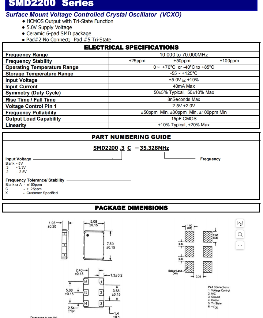 6G路由器晶振,SMD2200.3C-24.000MHz,GED壓控振蕩器 參數表
