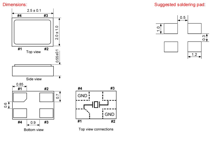 KX-6E,12.8655,16MHz,2520mm,Geyer石英晶體諧振器,石英貼片晶振,車載控制器晶振,尺寸圖