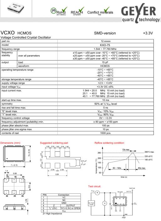 Geyer晶振,KXO-75晶振,壓控晶體振蕩器,壓控晶振(VCXO),壓控石英晶體振蕩器基本解決方案,PECL輸出,輸出頻率60MHz到200MHz之間,出色的低相位噪聲和抖動(dòng),三態(tài)功能,應(yīng)用:SDH/SONET,以太網(wǎng),基站,筆記本晶振應(yīng)用,符合RoHS/無(wú)鉛.