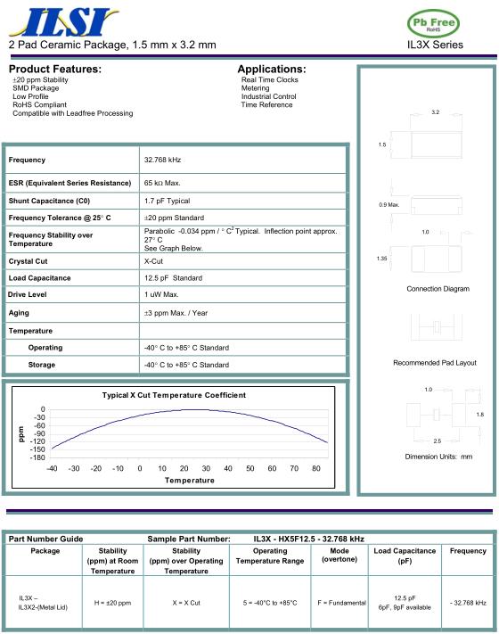 ILSI晶振,IL3X晶振,IL3X-HX5F12.5-32.768kHz晶振,貼片表晶32.768K系列具有超小型,薄型,質(zhì)地輕的表面貼片音叉型石英晶體振蕩器,晶振產(chǎn)品本身具備優(yōu)良的耐熱性,耐環(huán)境特性,在辦公自動化,家電領(lǐng)域,移動通信領(lǐng)域可發(fā)揮優(yōu)良的電氣特性,符合無鉛標(biāo)準(zhǔn),滿足無鉛焊接的回流溫度曲線要求,金屬外殼的石英晶振使得產(chǎn)品在封裝時能發(fā)揮比陶瓷晶振外殼更好的耐沖擊性能.