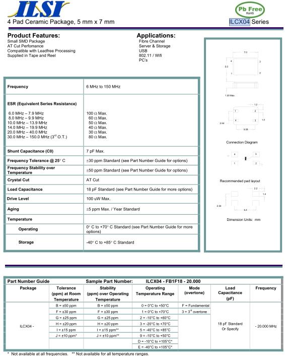 ILSI晶振,ILCX04晶振,ILCX04-FB1F18-20.000晶振,貼片晶振本身體積小,超薄型石英晶體振蕩器,特別適用于有目前高速發展的高端電子數碼產品,因為晶振本身小型化需求的市場領域,小型,薄型是對應陶瓷振蕩器(偏差大)和普通的石英晶體振蕩器(偏差小)的中間領域的一種性價比較出色的產品.產品廣泛用于筆記本電腦,無線電話,衛星導航SSD,USB,Blu-ray等用途,符合無鉛焊接的高溫回流焊曲線特性.