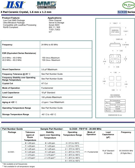 艾爾西晶振,ILCX20晶振,ILCX20-FB1F18-20.000MHz晶振,貼片晶振本身體積小,超薄型石英晶體振蕩器,特別適用于有目前高速發展的高端電子數碼產品,因為晶振本身小型化需求的市場領域,小型,薄型是對應陶瓷振蕩器(偏差大)和普通的石英晶體振蕩器(偏差小)的中間領域的一種性價比較出色的產品.產品廣泛用于筆記本電腦,無線電話,衛星導航SSD,USB,Blu-ray等用途,符合無鉛焊接的高溫回流焊曲線特性.