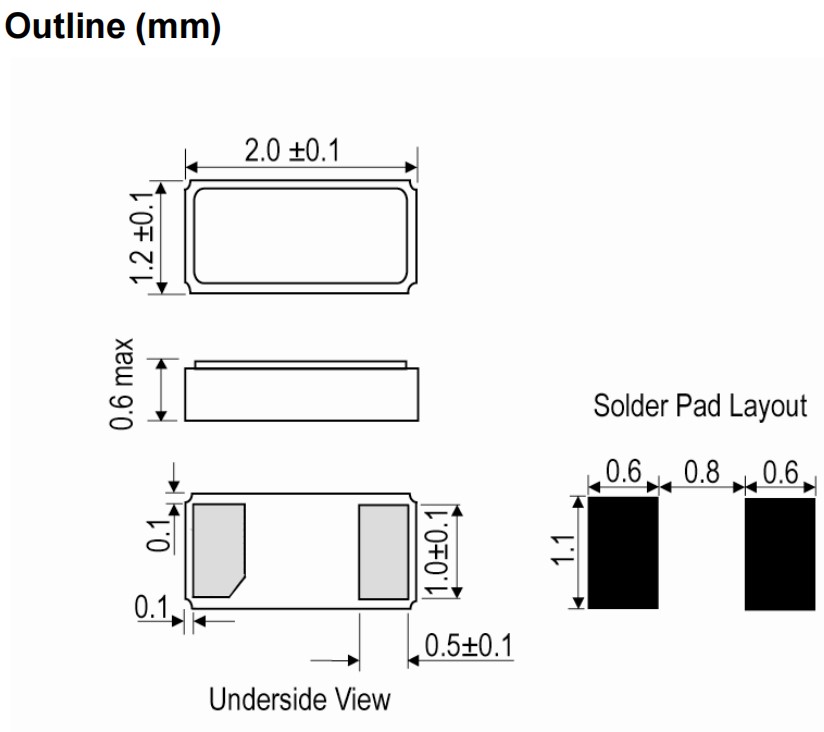 LFXTAL050789REEL,32.768KHz,2012mm,IQD智能手機(jī)晶振,IQXC-25,石英晶體諧振器,尺寸圖