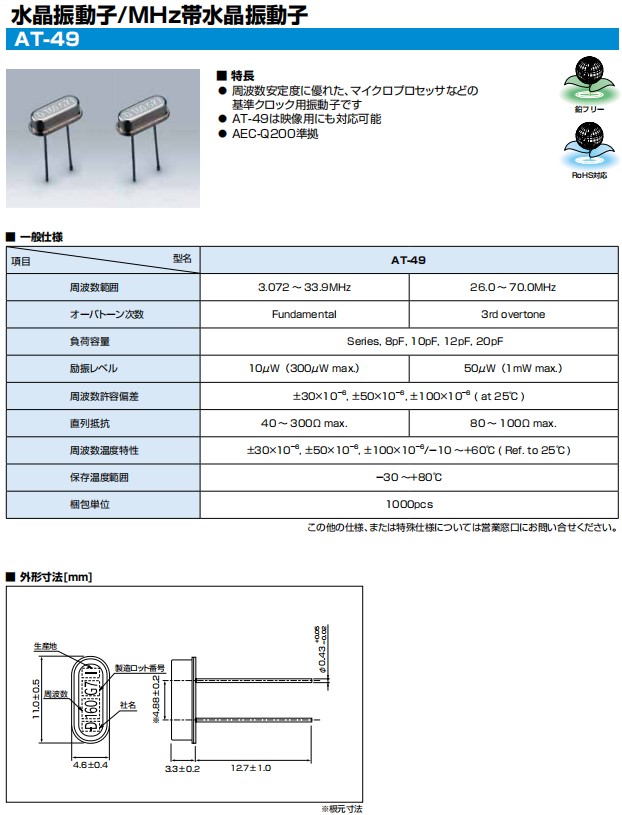 | 負荷容量 | 8pF,10pF,12pF,20pF | ||||||