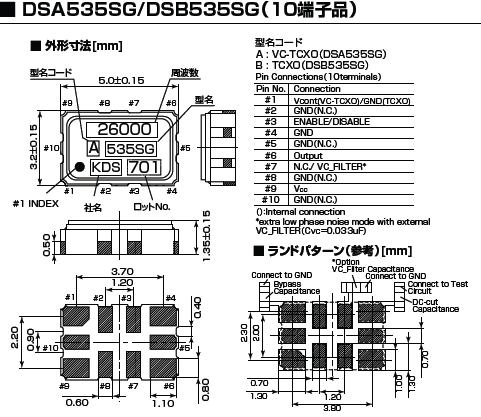 DSB535SG溫補晶振,KDS晶振,5032晶振該體積產品最適合于GPS,以及衛星通訊系統,智能電話等多用途的高穩定的頻率溫度特性晶振.為對應低電源電壓的產品.(DC+1.8V ± 0.1V to +2.9V ± 0.1V 對應IC可能) 高度:最高0.8 mm,體積:0.0022 cm3,重量:0.008 g,超小型,輕型.低消耗電流,表面貼片型產品.