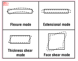 圖1表示培養(人造)石英晶振的頂視圖,Y軸是機械軸,如圖所示從一端到另一端延伸,從石頭上切下Y形切割板,使得厚度尺寸平行于Y軸,Y切割板的頻率主要由它們的厚度決定,然而,Y切割板表現出不希望的特性,使得它們不適合商業用途,因此目前使用的大多數板以略微旋轉的角度切割,導致板具有更理想的,可再現的屬性(最重要的是頻率穩定性與溫度的關系),兩個最常見的單圈Y切口是AT切口和BT切口,從圖1中可以看出,它們在方向上幾乎彼此相對. 圖2說明了可以在石英板中引起的各種振動模式,AT和BT板主要在厚度剪切模式下振動,然而,重要的是要理解,可以使任何石英板以一種或多種所示模式振動,甚至以兩種或更多種的某種組合振動,"其他"類型的振動可以通過電,機械,聲學,熱或這些因素的某種組合來感應,這些誘導響應通常被稱為"耦合"或"不需要"模式,作為進一步的復雜性,每當厚度剪切模式通電時,任何單個旋轉的厚度剪切諧振器也將在面剪切模式下振動.