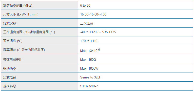 ●是用于高信賴性O(shè)CXO的具有優(yōu)越頻率穩(wěn)定度的石英晶體諧振器。