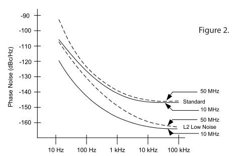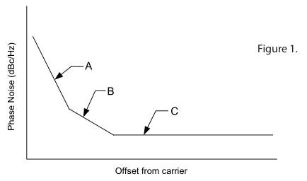 圖1的區(qū)域C稱為白噪聲或?qū)拵г肼?“L2”晶體振蕩器中的特殊低噪聲電路相對(duì)于標(biāo)準(zhǔn)設(shè)計(jì)提供了顯著的改進(jìn)(15-20dB).