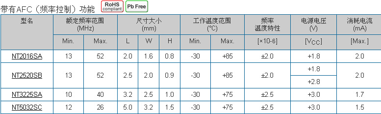 | 頻率公差 | Max. ±25 ×10-6 | Max. ±50 ×10-6 | Max. ±100 ×10-6 | |