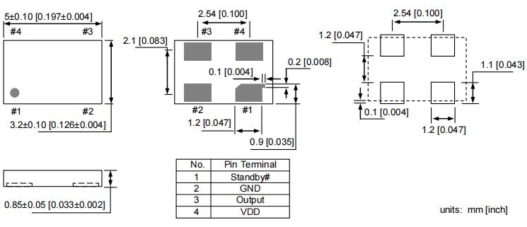 DSC1025BC2-133.0000T,Microchip低功耗晶振,5032mm振蕩器,移動應用晶振,尺寸圖