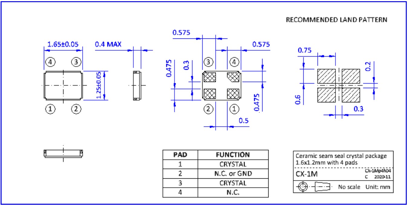 香港NKG無源晶振,S1M28.0000F18E23-EXT,便攜式設備6G晶振,S1M50.0000T18M25-EXT,超小型晶振,尺寸圖