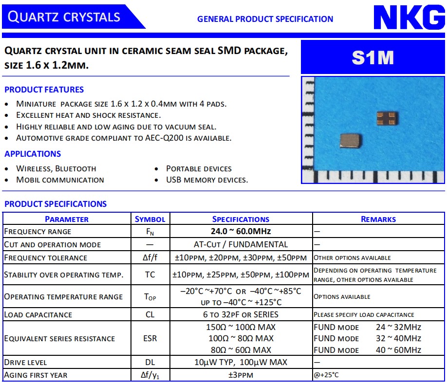 香港NKG無源晶振,S1M28.0000F18E23-EXT,便攜式設備6G晶振,S1M50.0000T18M25-EXT,超小型晶振,參數表