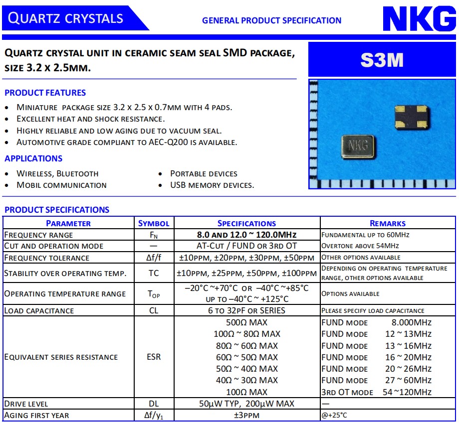 NKG高性能晶振,S3M60.0000F18E23-EXT,USB內(nèi)存設(shè)備6G晶振,S3M54.0000T18M1Z-EXT,車載控制器晶振,參數(shù)表