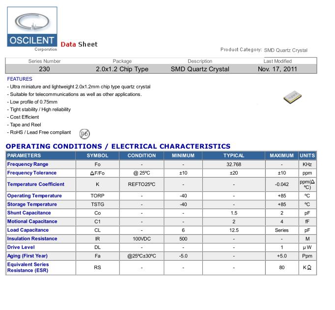 Oscilent晶振,230-32.768K-SR-20-W-TR晶振,2012mm晶振,貼片晶振本身體積小,超薄型石英晶體振蕩器,特別適用于有目前高速發(fā)展的高端電子數(shù)碼產(chǎn)品,因?yàn)榫д癖旧硇⌒突枨蟮氖袌?chǎng)領(lǐng)域,小型,薄型是對(duì)應(yīng)陶瓷振蕩器(偏差大)和普通的石英晶體振蕩器(偏差小)的中間領(lǐng)域的一種性價(jià)比較出色的產(chǎn)品.產(chǎn)品廣泛用于筆記本電腦,無線電話,衛(wèi)星導(dǎo)航SSD,USB,Blu-ray等用途,符合無鉛焊接的高溫回流焊曲線特性.