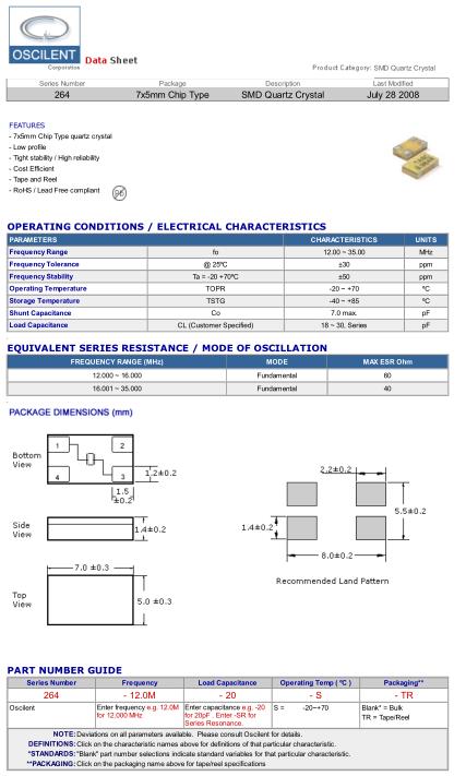 Oscilent晶振,264-12.0M-20-S-TR晶振,高性能晶振,貼片晶振本身體積小,超薄型石英晶體振蕩器,特別適用于有目前高速發(fā)展的高端電子數(shù)碼產(chǎn)品,因?yàn)榫д癖旧硇⌒突枨蟮氖袌?chǎng)領(lǐng)域,小型,薄型是對(duì)應(yīng)陶瓷振蕩器(偏差大)和普通的石英晶體振蕩器(偏差小)的中間領(lǐng)域的一種性價(jià)比較出色的產(chǎn)品.產(chǎn)品廣泛用于筆記本電腦,無(wú)線電話,衛(wèi)星導(dǎo)航SSD,USB,Blu-ray等用途,符合無(wú)鉛焊接的高溫回流焊曲線特性.