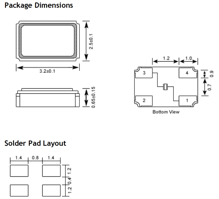 27825.0M0910KSTR,6G電信設備晶振,奧斯康利3225mm晶振 尺寸圖