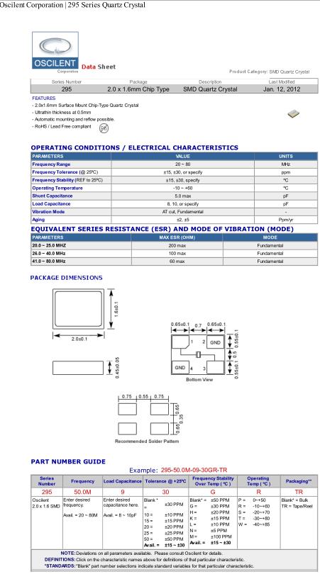 Oscilent晶振,295-50.0M-09-30GR-TR晶振,超小型晶振,貼片晶振本身體積小,超薄型石英晶體振蕩器,特別適用于有目前高速發(fā)展的高端電子數(shù)碼產(chǎn)品,因?yàn)榫д癖旧硇⌒突枨蟮氖袌?chǎng)領(lǐng)域,小型,薄型是對(duì)應(yīng)陶瓷振蕩器(偏差大)和普通的石英晶體振蕩器(偏差小)的中間領(lǐng)域的一種性?xún)r(jià)比較出色的產(chǎn)品.產(chǎn)品廣泛用于筆記本電腦,無(wú)線電話(huà),衛(wèi)星導(dǎo)航SSD,USB,Blu-ray等用途,符合無(wú)鉛焊接的高溫回流焊曲線特性.