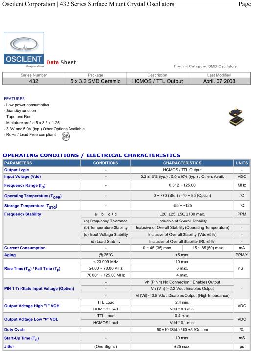 | PIN 1 Tri-State Input Voltage (Option) | - | Vh (Pin 1) No Connection : Enables Output | - | |