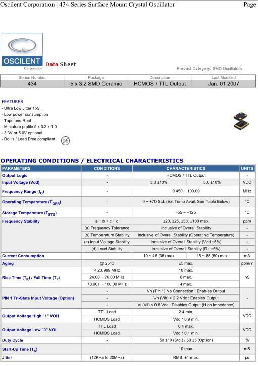 | PIN 1 Tri-State Input Voltage (Option) | - | Vh (Pin 1) No Connection : Enables Output | - | |