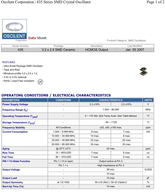 Oscilent晶振,435-12.0M-3EN-TTS晶振,SMD振蕩器,小型SMD有源晶振,從最初超大體積到現(xiàn)在的7050mm,6035mm,5032mm,3225mm,2520mm體積,有著翻天覆地的改變,體積的變小也使產(chǎn)品帶來了更高的穩(wěn)定性能,接縫密封石英晶體振蕩器,精度高,覆蓋頻率范圍寬的特點(diǎn),SMD高速自動(dòng)安裝和高溫回流焊設(shè)計(jì),Optionable待機(jī)輸出三態(tài)輸出功能,電源電壓范圍:1.8V~5V,高穩(wěn)定性,低抖動(dòng),低功耗,主要應(yīng)用領(lǐng)域:無線通訊,高端智能手機(jī),平板筆記本W(wǎng)LAN,藍(lán)牙,數(shù)碼相機(jī),DSL和其他IT產(chǎn)品的晶振應(yīng)用,三態(tài)功能,PC和LCDM等高端數(shù)碼領(lǐng)域,符合RoHS/無鉛.