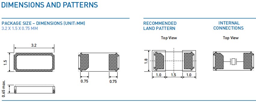 SMD-CRYSTAL SERIES M3215RR (3.2x1.5x0.75mm)