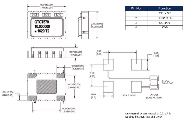 QTCT5703C1T-26.000000,26MHz,7050mm,Q-Tech品牌,QTCT570,TCXO溫補晶振,參數表