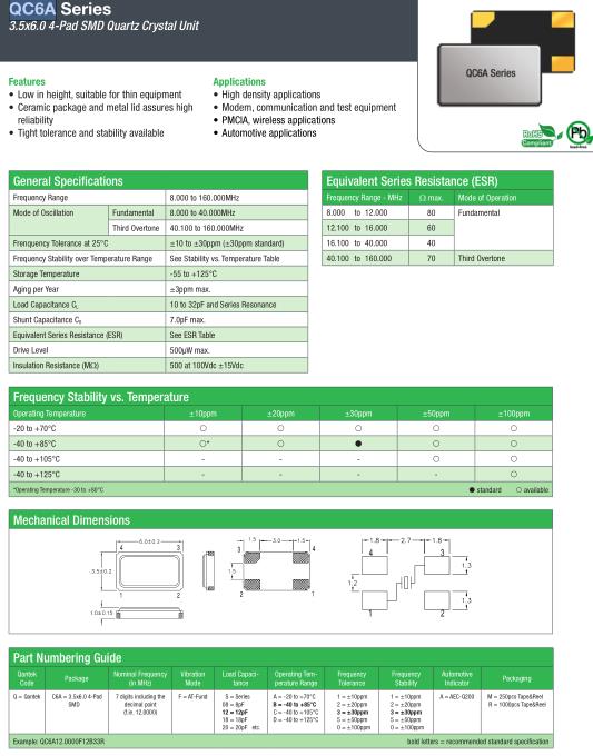| General Specifications-QANTEK晶振 | QC6A晶振 | |