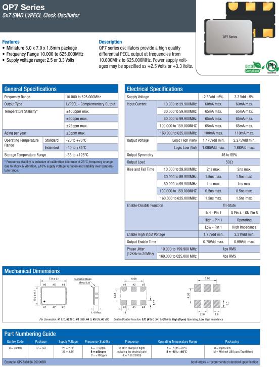 QANTEK晶振,QP7晶振,QP733B10.00000BR晶振,小型SMD有源晶振,從最初超大體積到現在的7050mm,6035mm,5032mm,3225mm,2520mm體積,有著翻天覆地的改變,體積的變小也使產品帶來了更高的穩定性能,接縫密封石英晶體振蕩器,精度高,覆蓋頻率范圍寬的特點,SMD高速自動安裝和高溫回流焊設計,Optionable待機輸出三態輸出功能,電源電壓范圍:1.8V~5V,高穩定性,低抖動,低功耗,主要應用領域:無線通訊,高端智能手機,平板筆記本WLAN,藍牙,數碼相機,DSL和其他IT產品的晶振應用,三態功能,PC和LCDM等高端數碼領域,符合RoHS/無鉛.