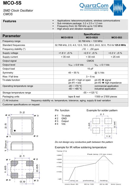 QuartzCom晶振,MCO-5S18晶振,OSC差分石英晶振,小型SMD有源晶振,從最初超大體積到現(xiàn)在的7050mm,6035mm,5032mm,3225mm,2520mm體積,有著翻天覆地的改變,體積的變小也使產(chǎn)品帶來了更高的穩(wěn)定性能,接縫密封石英晶體振蕩器,精度高,覆蓋頻率范圍寬的特點,SMD高速自動安裝和高溫回流焊設(shè)計,Optionable待機輸出三態(tài)輸出功能,電源電壓范圍:1.8V~5V,高穩(wěn)定性,低抖動,低功耗,主要應(yīng)用領(lǐng)域:無線通訊,高端智能手機,平板筆記本W(wǎng)LAN,藍牙,數(shù)碼相機,DSL和其他IT產(chǎn)品的晶振應(yīng)用,三態(tài)功能,PC和LCDM等高端數(shù)碼領(lǐng)域,符合RoHS/無鉛.