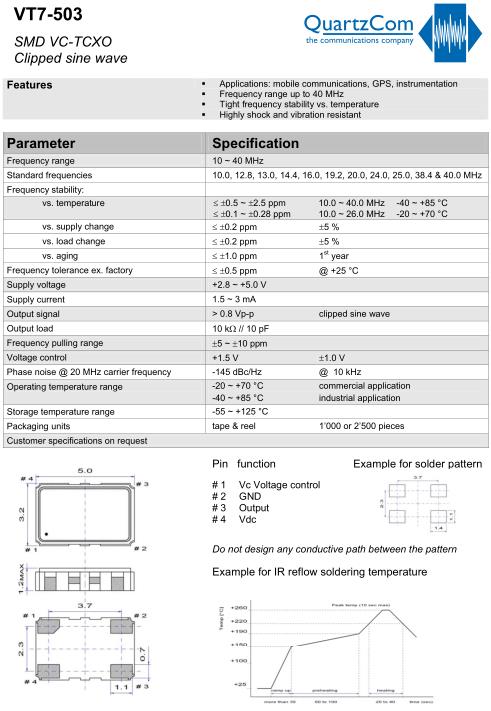 QuartzCom晶振,VT7-503晶振,SMD晶振,5032mm體積的石英晶體振蕩器,有源晶振,該產(chǎn)品可驅(qū)動(dòng)2.5V的溫補(bǔ)晶振,壓控晶振,VC-TCXO晶體振蕩器產(chǎn)品,電源電壓的低電耗型,編帶包裝方式,可對(duì)應(yīng)自動(dòng)高速貼片機(jī)自動(dòng)焊接,及IR回流焊接(無鉛對(duì)應(yīng)),為無鉛產(chǎn)品,超小型,質(zhì)地輕.產(chǎn)品被廣泛應(yīng)用到集成電路,程控交換系統(tǒng),無線發(fā)射基站.