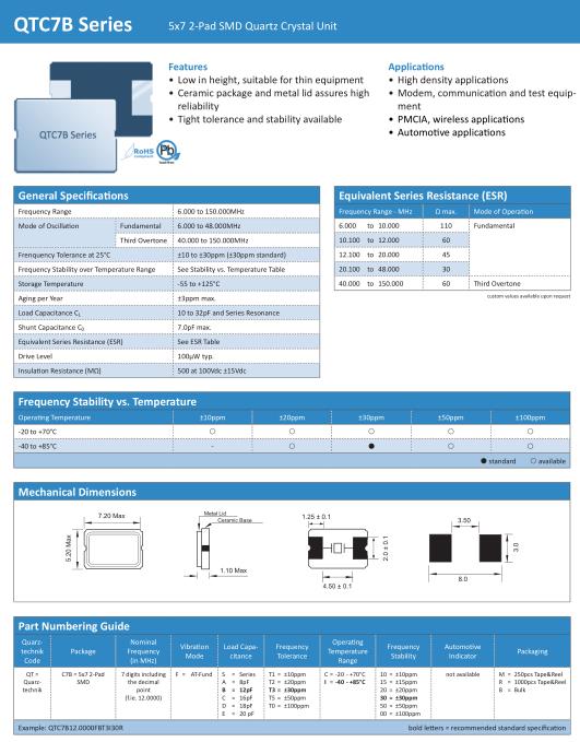 | Shunt Capacitance C 0 | 7.0pF max. | |