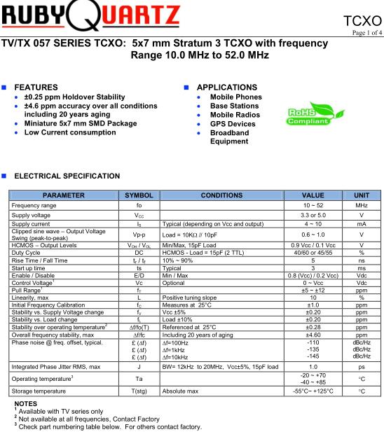 Rubyquartz晶振-Rubyquartz Crystal是領(lǐng)先的頻率元件供應(yīng)商之一,主要提供市場盧柏貼片晶振,有源晶振,溫補(bǔ)晶振,石英晶體等,Rubyquartz晶振集團(tuán)致力于向全球用戶提供優(yōu)質(zhì)的晶振產(chǎn)品,并確保每一顆晶振的完整度,讓用戶使用上性能優(yōu)越,價(jià)格低廉的晶振產(chǎn)品.Rubyquartz晶振,TV057晶振,TV057A-D3-0.28-26.000-3-TR晶振.