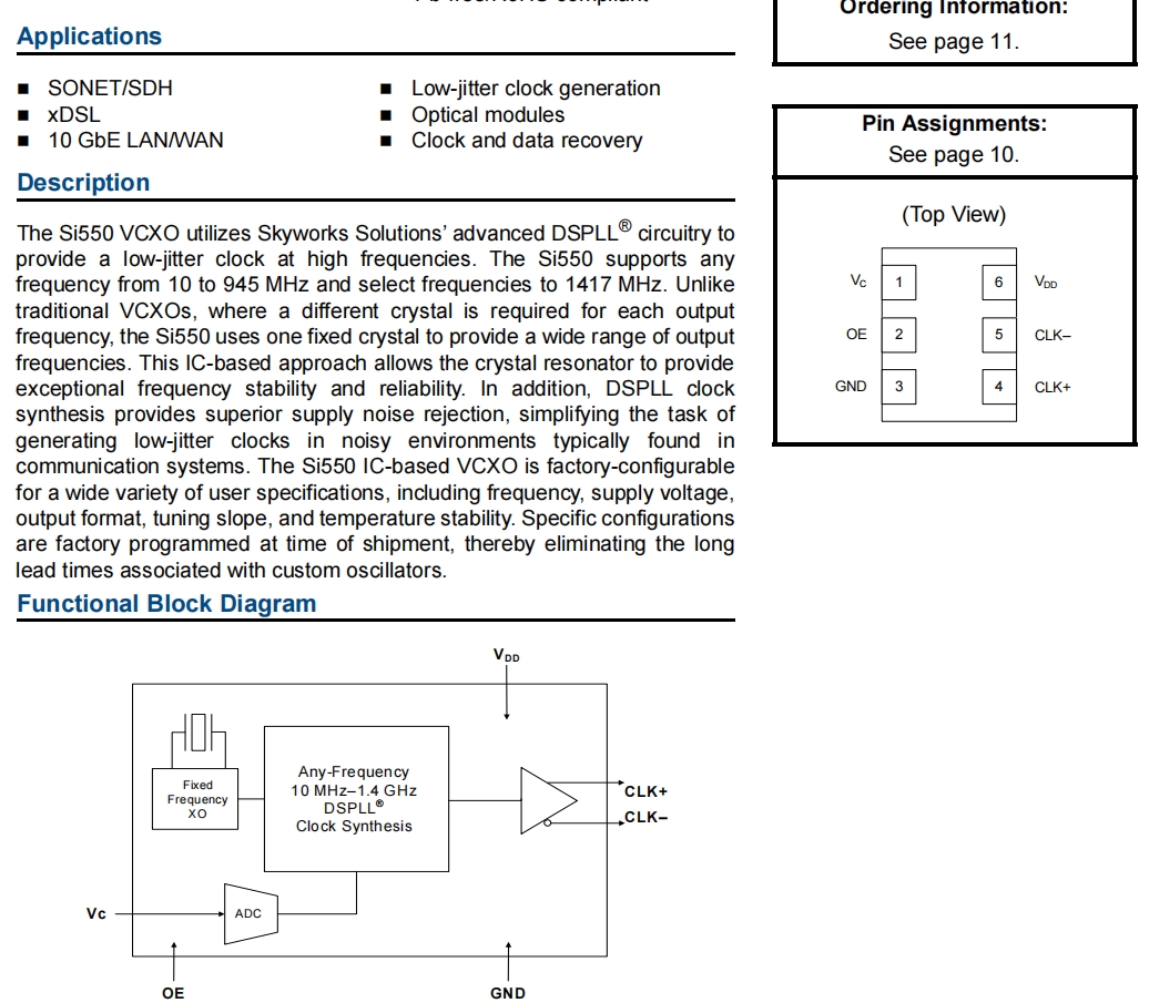 550AA300M000DGR,Si550光學模塊晶振,思佳訊LVPECL壓控晶振