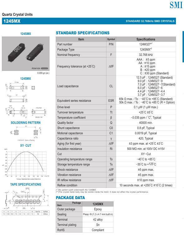 SMI晶振,124SMX晶振,低抖動(dòng)晶振,32.768K時(shí)鐘晶體具有小型,薄型,輕型的貼片晶振表面音叉型晶體振蕩器,產(chǎn)品具有優(yōu)良的耐熱性,耐環(huán)境特性,可發(fā)揮晶振優(yōu)良的電氣特性,符合RoHS規(guī)定,滿足無(wú)鉛焊接的高溫回流溫度曲線要求,金屬外殼的封裝使得產(chǎn)品在封裝時(shí)能發(fā)揮比陶瓷振蕩器外殼更好的耐沖擊性.
