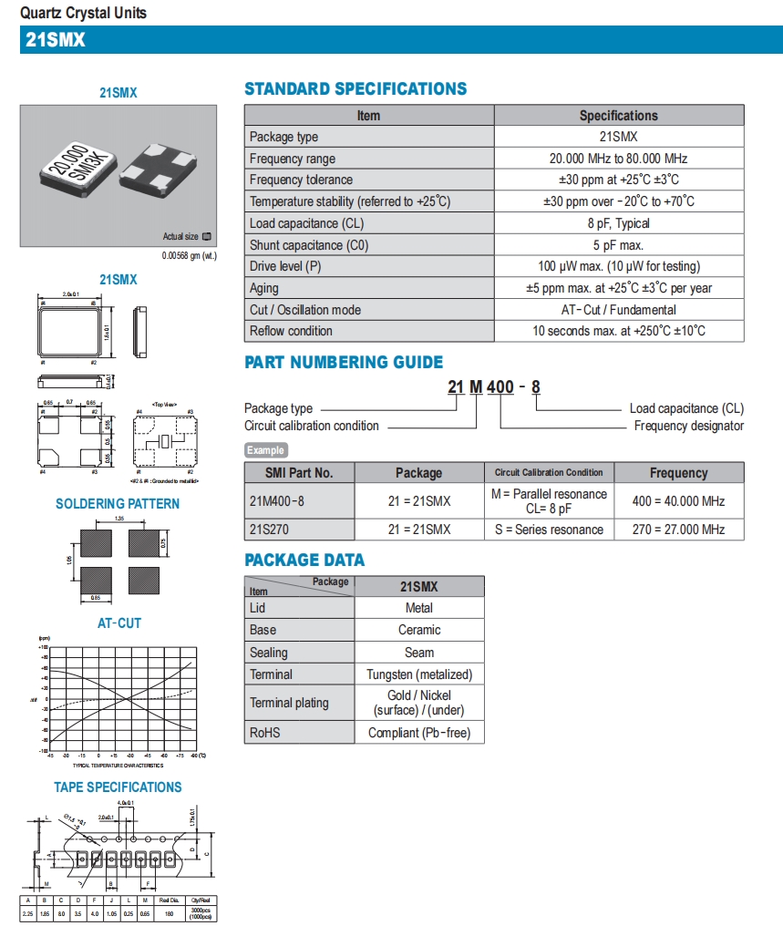 日本SMI晶體\21M250-8\6G無線晶振\21SMX小體積晶振 參數表
