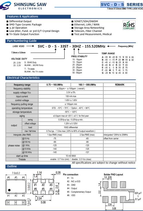 新松晶振,SVC-D-S晶振,SVC-D-S-33ST-30HZ-16.000MHz晶振,小型SMD有源晶振,從最初超大體積到現在的7050mm,6035mm,5032mm,3225mm,2520mm體積,有著翻天覆地的改變,體積的變小也使產品帶來了更高的穩定性能,接縫密封石英晶體振蕩器,精度高,覆蓋頻率范圍寬的特點,SMD高速自動安裝和高溫回流焊設計,Optionable待機輸出三態輸出功能,電源電壓范圍:1.8V~5V,高穩定性,低抖動,低功耗,主要應用領域:無線通訊,高端智能手機,平板筆記本WLAN,藍牙,數碼相機,DSL和其他IT產品的晶振應用,三態功能,PC和LCDM等高端數碼領域,符合RoHS/無鉛.