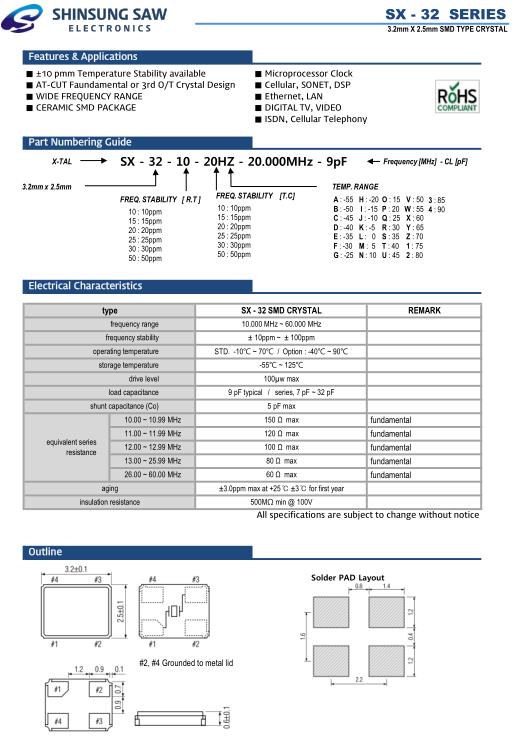 | type | SX - 32 SMD CRYSTAL | REMARK | |