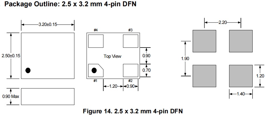 501BCA16M0000CAG,16MHz,3225mm,Silicon有源晶振,Si501,辦公設備應用晶振,尺寸圖
