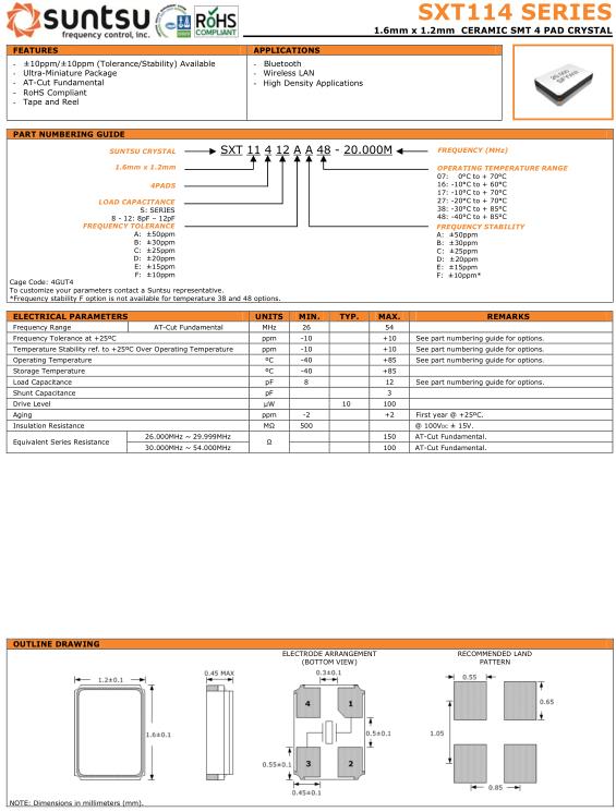 | Frequency Range | MHZ | 26 | 54 | AT-Cut Fundamental. | ||